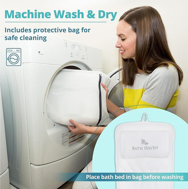 Bath Haven bathtub pillow is designed to envelope your body in a soft, breathable cushion so you can bathe in bliss. Feel relief as your sensitive joints and sore muscles get the support they need from this top quality bath bed for tub use. Step into your home spa with a bathtub cushion that provides you with a relaxing, full body bathing experience.