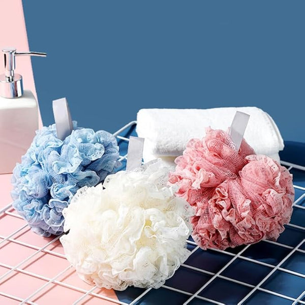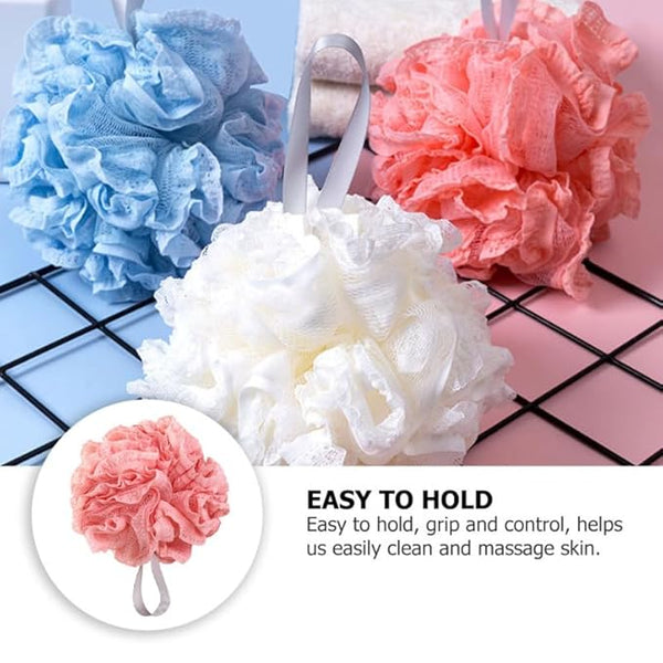 Shower mesh ball: Gently cleanses and exfoliates for more healthy- looking skin. Beautiful colors with hanging ribbons for ease of use and storage