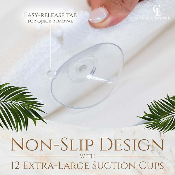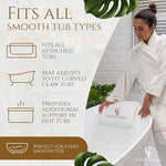 Nope, it sticks right where you put it with these big suction cups. And there're tabs to yank it off when you're done. No sliding around when you're getting in or out.