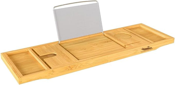 Our Bamboo bath table tray designed for maximum convenience, this tray expands from 30 inches to 43 inches, ensuring a perfect fit for any bathtub.