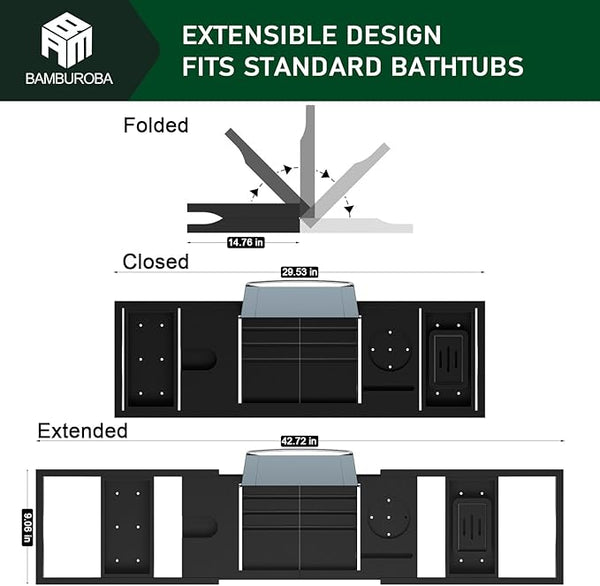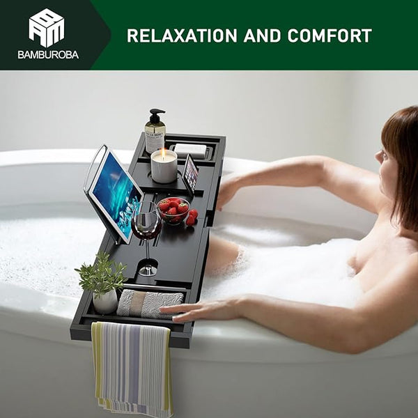 Experience a luxury in-home spa experience made possible with the BAMBUROBA premium bamboo bathtub tray. Take advantage of some me-time as you lay back, relax & unwind. Clear your mind & relieve tension in your muscles with a warm,guaranteed to leave you feeling reinvigorated.