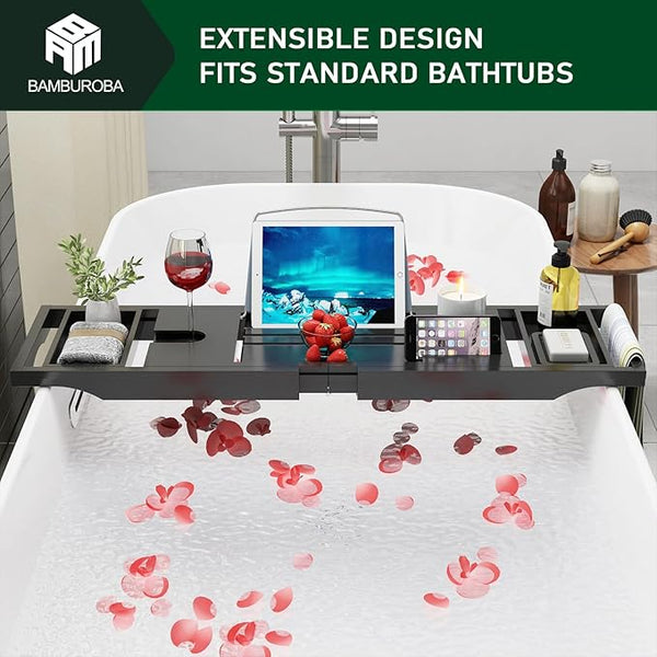 Product descriptionExperience a luxury in-home spa experience made possible with the BAMBUROBA premium bamboo bathtub tray. Take advantage of some me-time as you lay back, relax & unwind. Clear your...