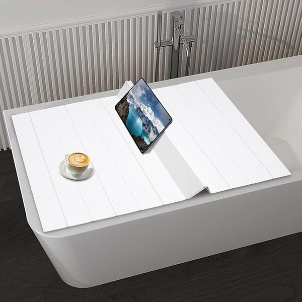 Foldable Bath Cover 70.87x31.56 Inch PVC Waterproof Folding Bathtub Cover White Foldable Bathtub Tray for Dust Protection and Insulation for Flat Bathtubs (180x80x0.65cm)