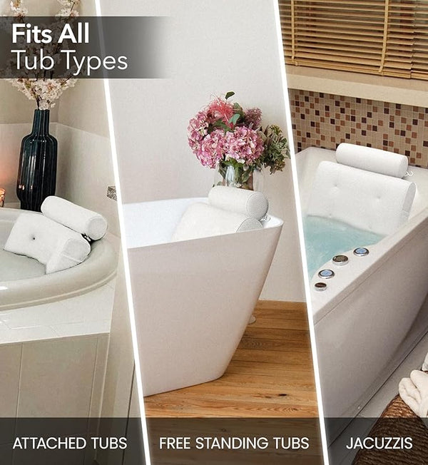 Product descriptionThe Everlasting Comfort Bath Pillow for Tub with HeadrestBathtub Pillow Provides Added Comfort for Your Head and BackLuxury Bathtub Pillow FeaturesJoin the Many People Who Enjoy Our Bath CushionBath...