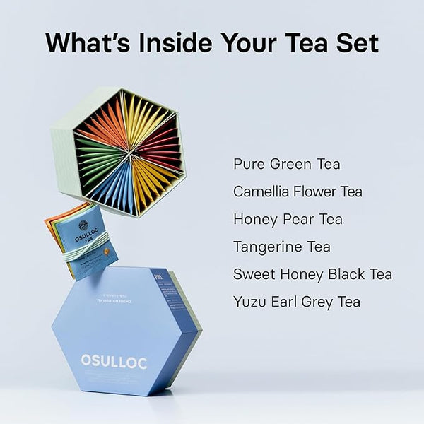 Product descriptionA Plentiful Assorted Tea Gift SetGift of EleganceExclusive Gift BoxA Luxurious Hexagonal Design Package with Neat BandingHousing 5 Types of Osulloc's Premium Blending Teas & Organic Pure Green Tea