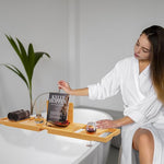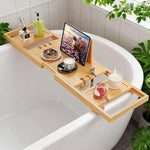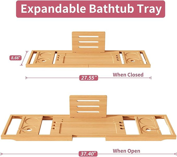 Indulge in luxury baths! This bathtub tray holds your tablet, wine, snacks, and more, turning bath time into a blissful retreat.