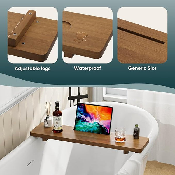 Product descriptionExpandable Bathtub Caddy TrayNothing completes a relaxing bath better than a good book and a glass of wine. A bathtub tray is like a little table for your tub....