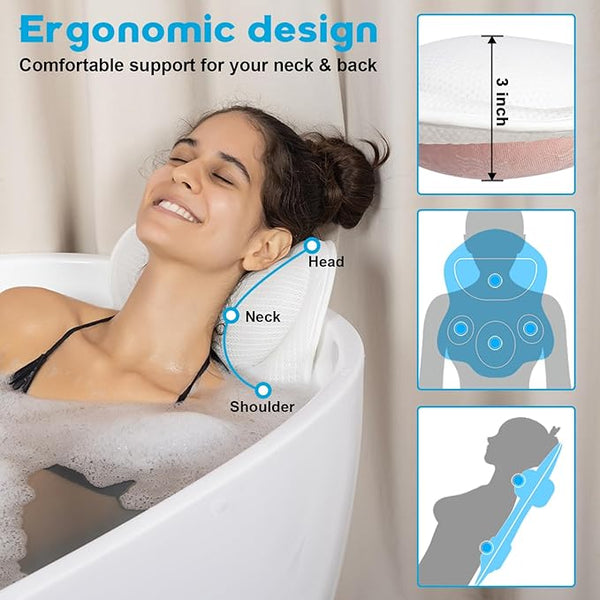 Yes, with its non-slip rubber back and six powerful suction cups, the pillow stays securely in place throughout your bath.