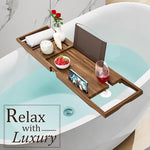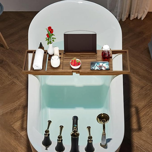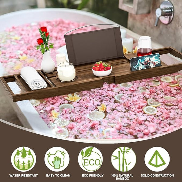 Relax and unwind after a long day & treat yourself to some well deserved me-time with our expandable bamboo bathtub tray. Wash away stressors & bathe in comfort.