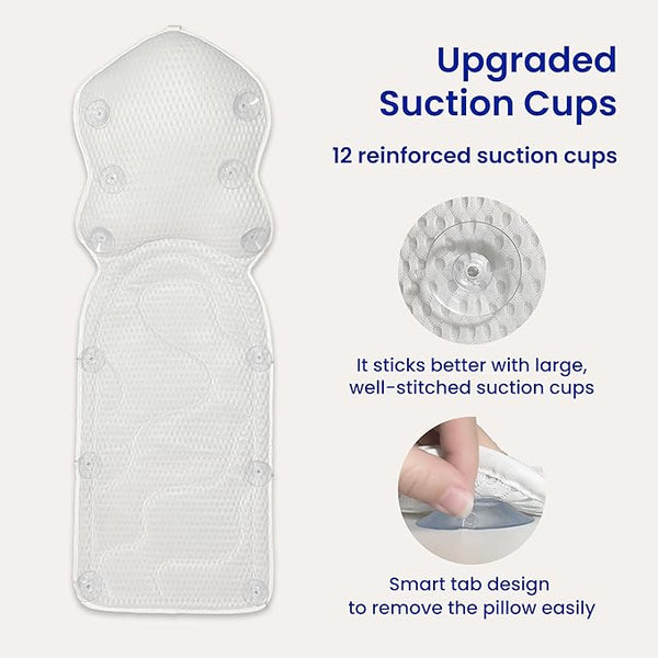 Crafted with 3D air mesh technology, this bath cushion for tub provides soft, breathable cushioning that allows water and air to flow through, ensuring maximum comfort.