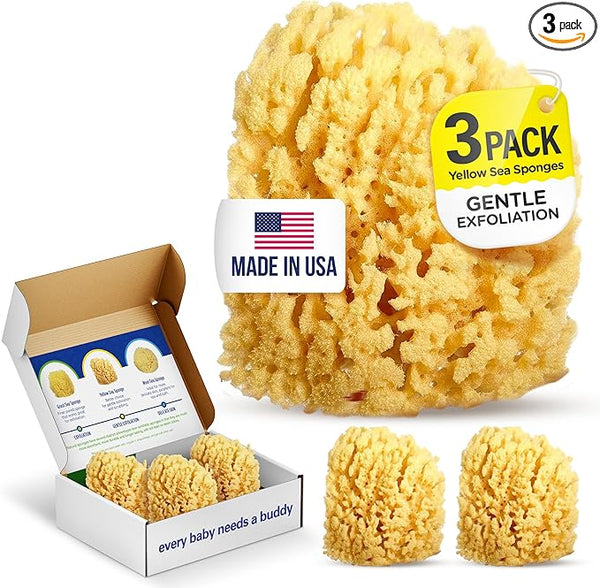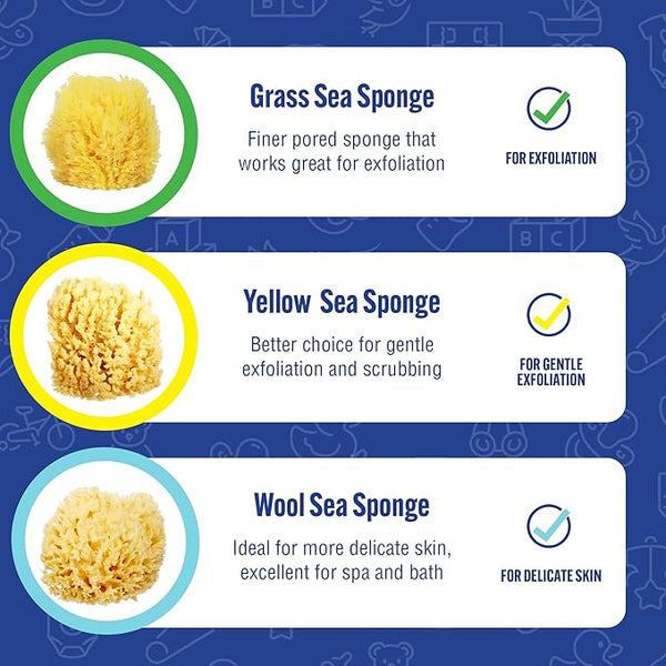 Our Yellow Sea Sponge is harvested from the ocean, offering a unique, soft texture. It's more absorbent and softer than synthetic sponges, ensuring a more natural and gentle wash for your baby.