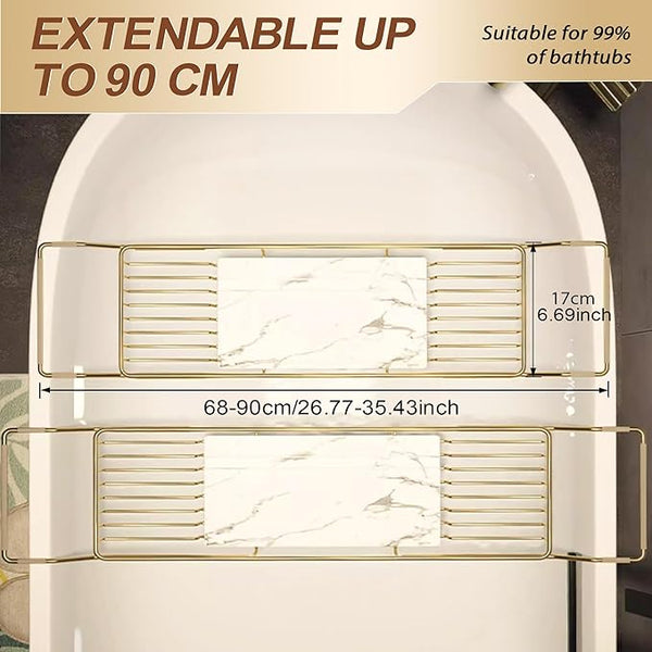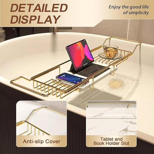 Indulge in a luxurious bathing ritual with the BVL Bathtub Tray. Crafted from premium stainless steel and featuring a marble base, this adjustable and rustproof bath caddy offers a waterproof design for ultimate relaxation and spa-like ambiance.