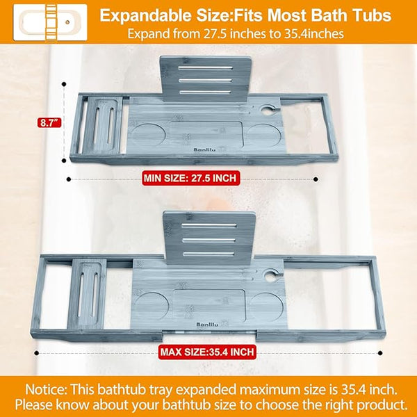 Premium Bathtub Caddy Tray - Bath Tray - Bath Tub Tray Table for Bathtub - Bath Caddy Tray for Bathtub, Expandable Size, Fits Most Bath Tubs