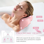 The back of the bath pillow is designed with small deepening suction cups that securely attach to any smooth surface to ensure stability.
