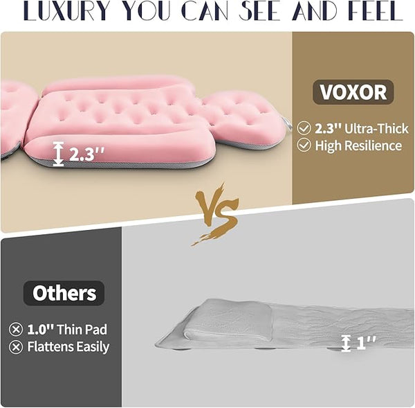 Product descriptionBathe in Total ComfortLuxury You can See And Feel2.3" Ultra-Thick160 Powerful Suction CupsSkin-Friendly FabricHigh-ResilienceYour favorite color. Your perfect size. Explore the collection?VOXOR bath cushion has transformed over 100,000 bathing...