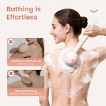Yes. The brush is designed with a long handle and rotating head, making it easy to reach and clean your back thoroughly without effort.