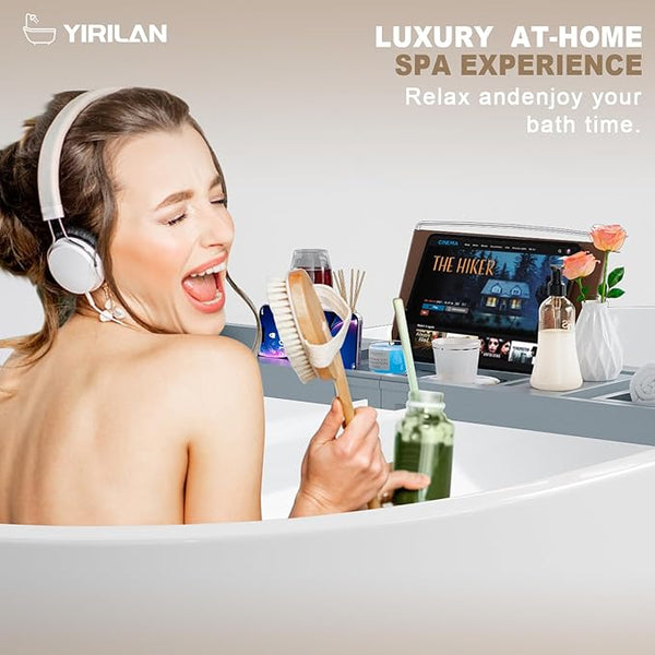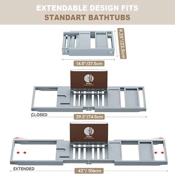 Premium Bathtub Tray Caddy, Expandable Bath Tray, Unique House Warming Gifts, New Home, Anniversary and Wedding Gifts for Couple, Bridal Shower Gift for Women