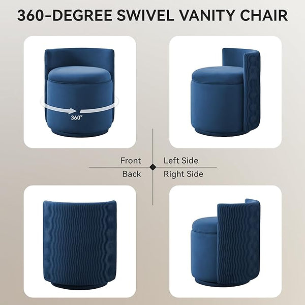 Product description360¡Æ Swivel Velvet Vanity ChairHidden Safety, Secures Cushion in PlaceHidden Storage Space, Stylish & FunctionalIs assembly required?180 Degree or 360 Degree Rotation?Designed with a dedicated anti-slip panel that fits...