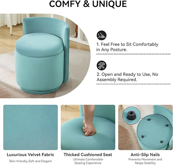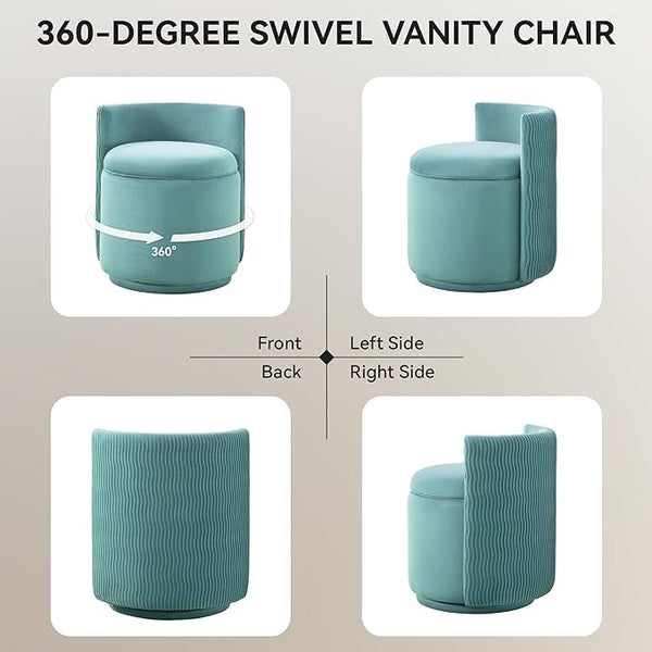 Product description360¡Æ Swivel Velvet Vanity ChairHidden Safety, Secures Cushion in PlaceHidden Storage Space, Stylish & FunctionalIs assembly required?180 Degree or 360 Degree Rotation?Designed with a dedicated anti-slip panel that fits...