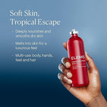 This luxurious oil blends Frangipani, Monoi and Coconut Oils to deeply hydrate and soften skin, hair and nails. The non-greasy formula absorbs quickly, leaving skin silky-smooth and lightly scented with a tropical aroma.