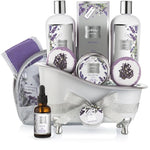 The LOVERY premium home bath skincare giftset includes a luxurious loofah body scrubber as well as bath oil with a dropper, which is enriched with Lavender, Vitamin E and Shea Butter. Our bath oil will help strengthen your hair roots and add a healthy radiance to your hair.