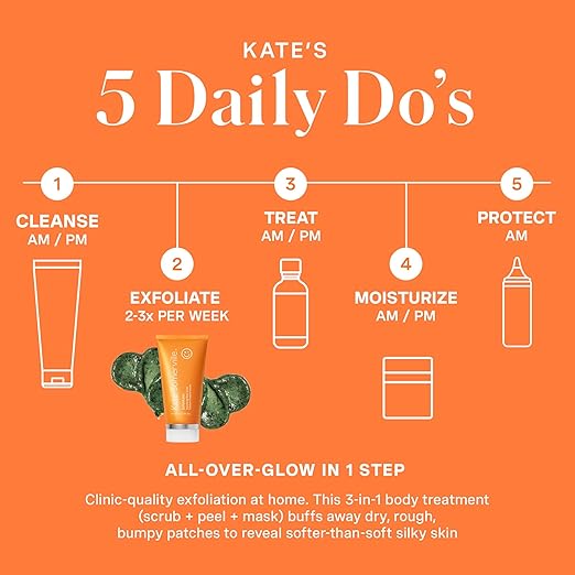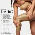 Use 2-3 times per week. Before cleansing, apply a dime-sized amount to targeted areas and massage gently for 30 seconds. Allow product to sit on skin for up to 3 minutes. Rinse thoroughly and continue with your normal daily body routine.