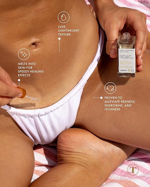 Apply serum on redness-prone areas, including the pubic area, underarms, legs, brows, and chin. Avoid eye area. Discontinue use if irritation occurs. Use anywhere hair meets skin to hydrate.