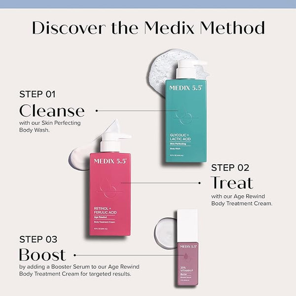 Product descriptionSkincare is a science.Facial care gets all the attention, but your face makes up only 10% of your entire skin surface ? Medix 5.5 is a laboratory-owned, science-backed body...