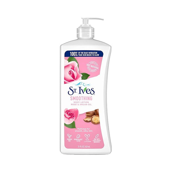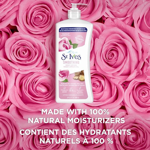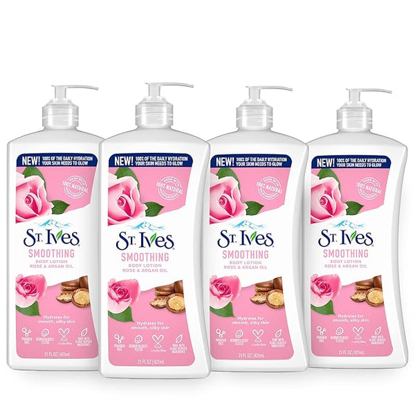 St. Ives Smoothing Hand & Body Lotion for Women with Pump Daily Moisturizer Rose and Argan Oil for Dry Skin Made with 100% Natural Moisturizers 21 fl oz 4 Pack