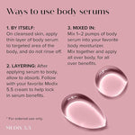 Mix a few pumps of our powerful concentrated booster serums with your favorite body moisturizer, body oil, face cream, foundation, concealer, or facial serum within your palm and rub hands together to combine. Then apply onto cleansed skin focusing on problem areas for extra care where you need it most.