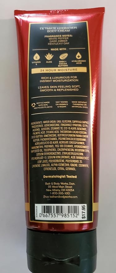 Bath & Body Works Men's Bourbon Ultimate Hydration Body Cream 8 Ounces Pack of 2