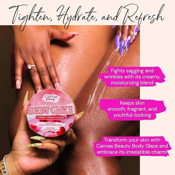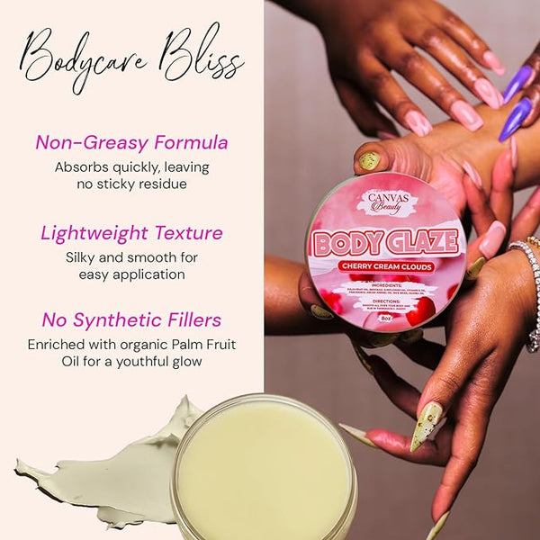 Canvas Beauty Body Glaze Cherry Cream Clouds - Moisturizing Non-Greasy Body Butter for Women With Beeswax Jojoba Oil and Rice Bran for Soft and Glossy Skin