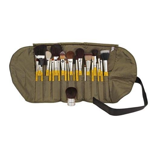 The Luxury 24 Piece Brush Set is the perfect brush set for overall flawless makeup application. Studio Line brushes are professional makeup brushes with classic 7-layer yellow handles, anodized aluminum ferrules, and a blend of natural and synthetic bristles. This set comes equipped with all the brushes you need to apply eye, face, and body makeup from base and priming application to perfect a perfect finish. It also comes with a roll-up pouch that has 20 pockets to accommodate a wide range of brushes and an additional 4 side pockets to hold small or loose items in place.