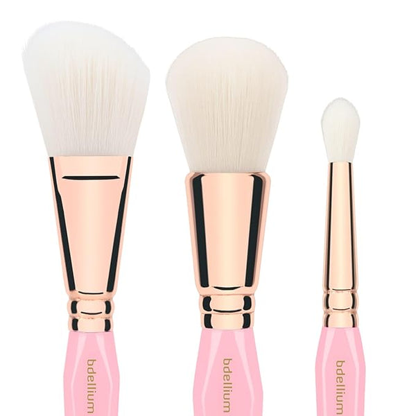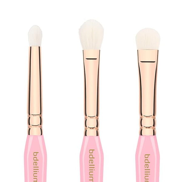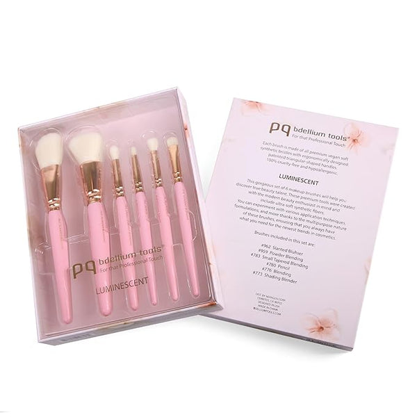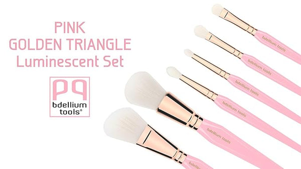 Bdellium Tools Pink Golden Triangle Luminescent Makeup Brush Set - Premium Tool with Soft Synthetic Bristles and Rose Gold Brass Ferrule for Multipurpose (Pink 6 pcs)