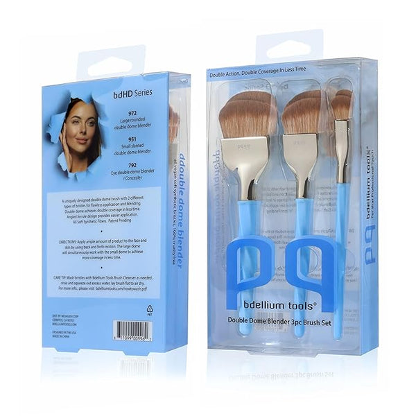 Bdellium Tools Professional Makeup Brush - Blue Double Dome Blender 3pc Brush Set