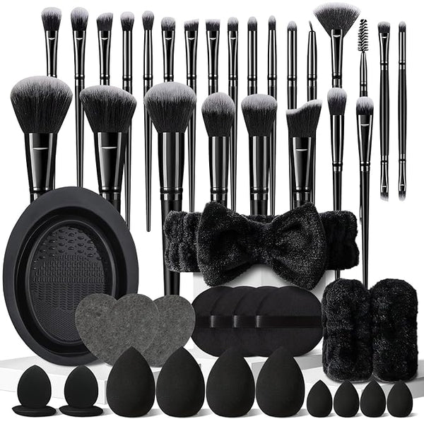 47Pcs Black Makeup Brushes Set Professional Makeup Kit Multi-functional Makeup Tool Set with Facial Makeup Accessories Foundation Makeup Brush Kit Eye and Face Make up Brushes & Tools
