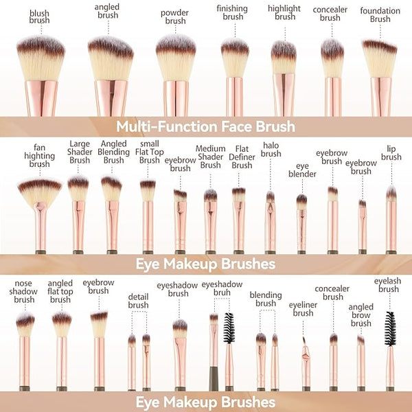 Product descriptionThe perfect complete set of makeup brushes available in 5 stylesRose Gold & Black - classic and chicSilver & Black- elegant and sophisticatedRose Gold & White - modern and...