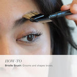 Use the firm bristles of the Bristle Brush to prepare the brow hairs for styling. Firmly brush brow hairs inward, upward, and outward before directing brows into your preferred shape.