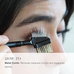Immediately following mascara application, use the Metal Comb to separate lashes and eliminate mascara clumping. Carefully run the comb tool through lashes, starting a safe distance from the root of the lashes and moving upward and away from eyes in a slow and gentle motion.