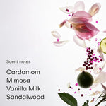 Top: Cardamom, Bergamot Heart: Mimosa, Violet Base: Vanilla Milk, Sandalwood, Tonka Beans