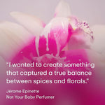 "I wanted to create something that captured a true balance between spices and floralcy, so the mimosa and cardamom are the hero here where bold spiciness adds signature and intrigue." -- Jerome Epinette, Not Your Baby Perfumer