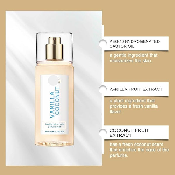 Vanilla Coconut Body Fragrance Mist - Long-Lasting Scent Portable & Refreshing Enhances Natural Charm(2PCS)