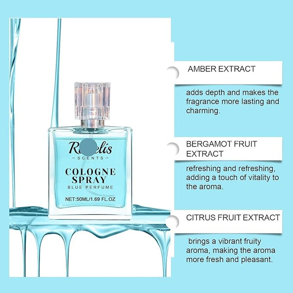 Gulong Blue Perfume - Natural Fresh Fragrance Alluring Amber Scent Long-Lasting Elegant Scent For Couples' Dates(2PCS)