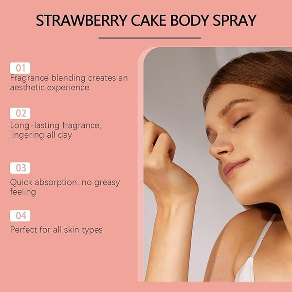 Strawberry Cake Body Fragrance Spray - Long-Lasting Soft & Layered Fresh Scent Skin-Nourishing & Mood-Enhancing Perfume Mist(2PCS)