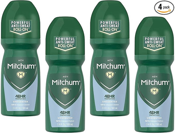 Mitchum Invisible Anti-Perspirant & Deodorant Roll-On, Unscented 3.4 oz (Pack of 4)