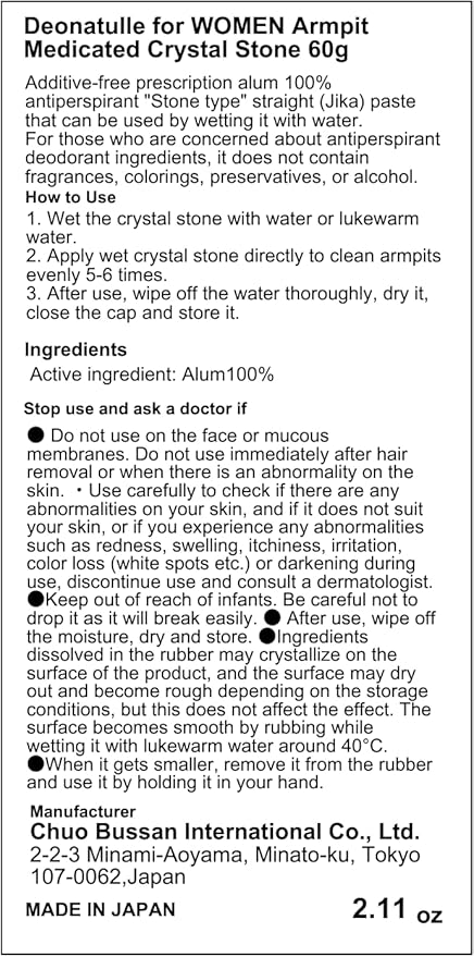 Deonatulle for WOMEN Armpit Medicated Crystal Stone 60g - Japan No1 Deodorant (Harakjuku Culture Pack)