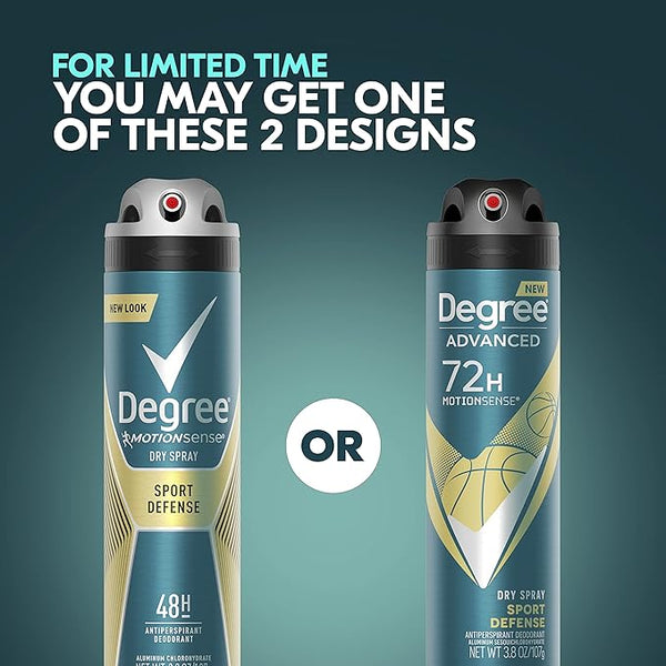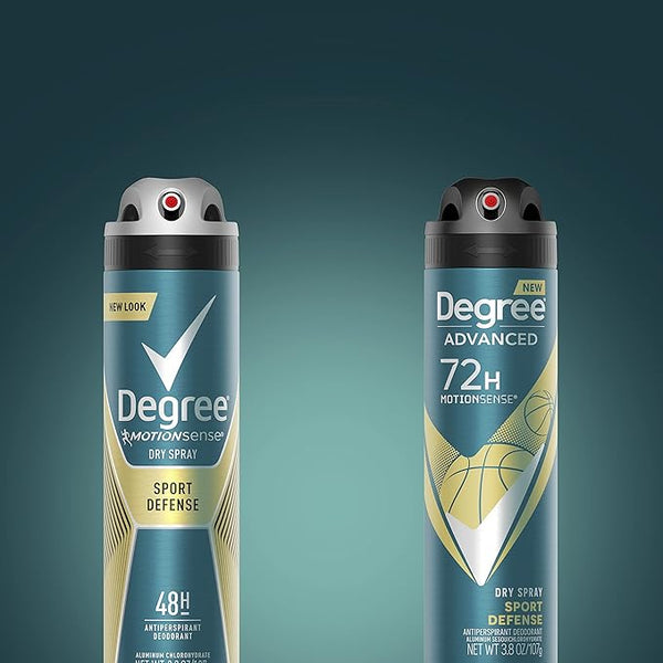 The average day is full of activity and short on time. Degree Men Sport Defense Antiperspirant Deodorant Dry Spray helps you go beyond your limits with 72-hour sweat and odor protection. This antiperspirant deodorant features our breakthrough MotionSense technology that doesn't stop work working no matter how much you move.