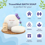 TRAVELWELL Individually Wrapped 30ml Shampoo & Conditioner 2 in 1, 25 Bottles + 30ml Body Lotion, 25 Bottles + Round Tissue Pleated 28g Cleaning Travel Soap In Bulk, 25 Bars