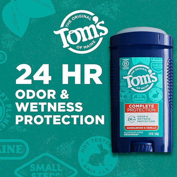 Tom¡¯s of Maine Complete Protection is made with naturally derived ingredients. Made with zero aluminum, parabens, or artificial fragrances, this natural deodorant is your odor and wetness protection secret weapon.