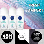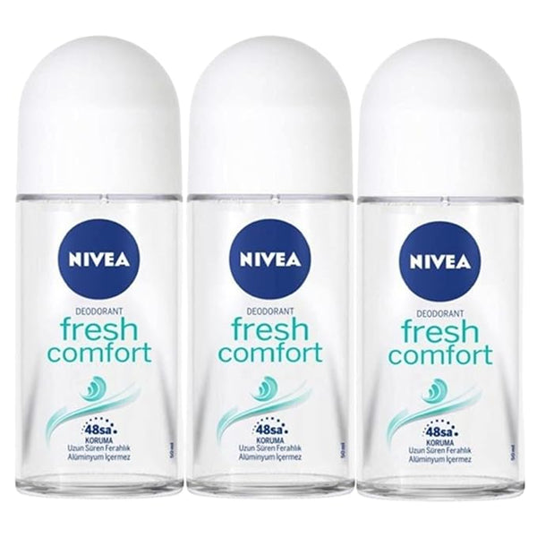 NIVEA FRESH COMFORT ROLL-ON ? FREE ALCOHOL ANTIPERSPIRANT DEODORANT 48 HOURS PROTECTION 1.7 OZ (PACK OF 3)